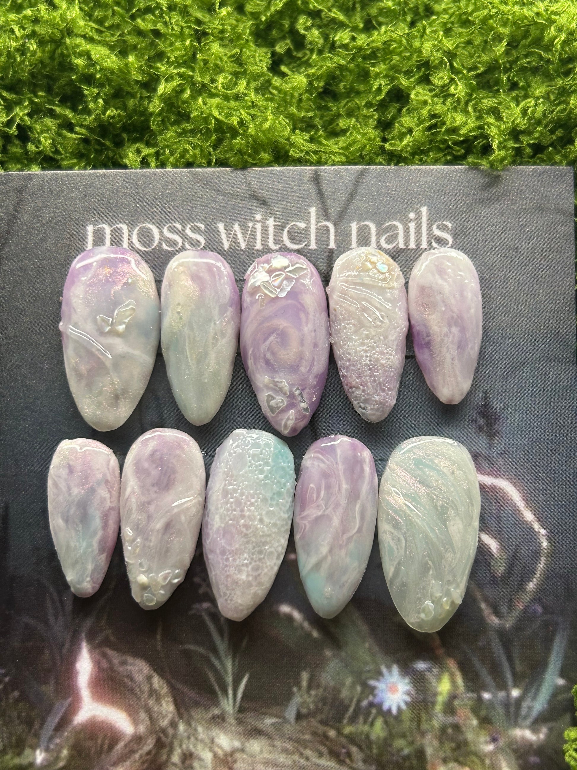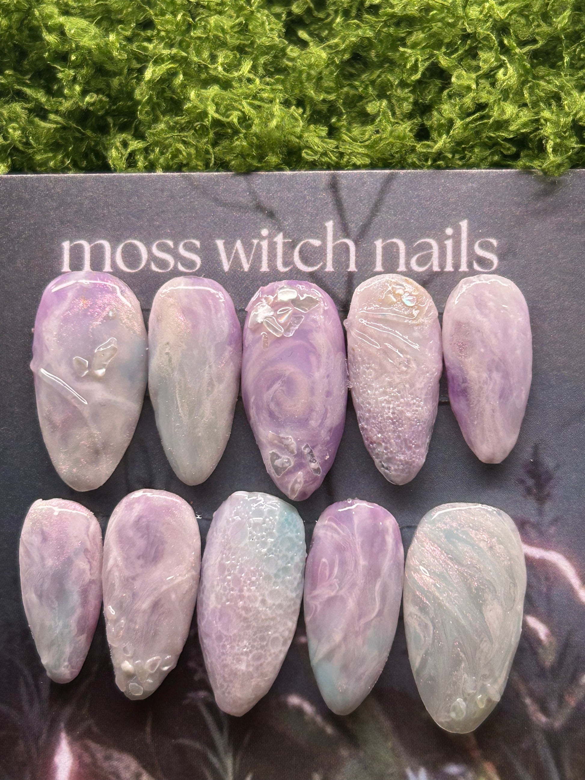 Soft waves of lavender & seafoam. Moonlight swirling across a tidepool.