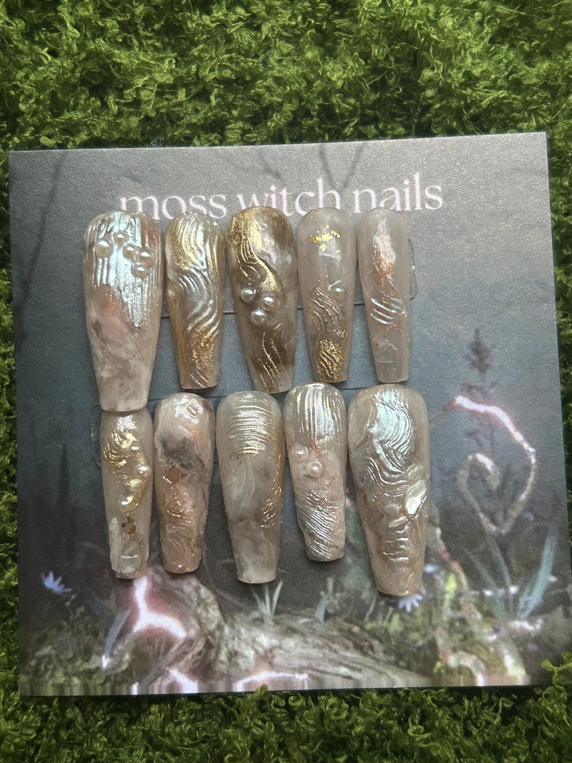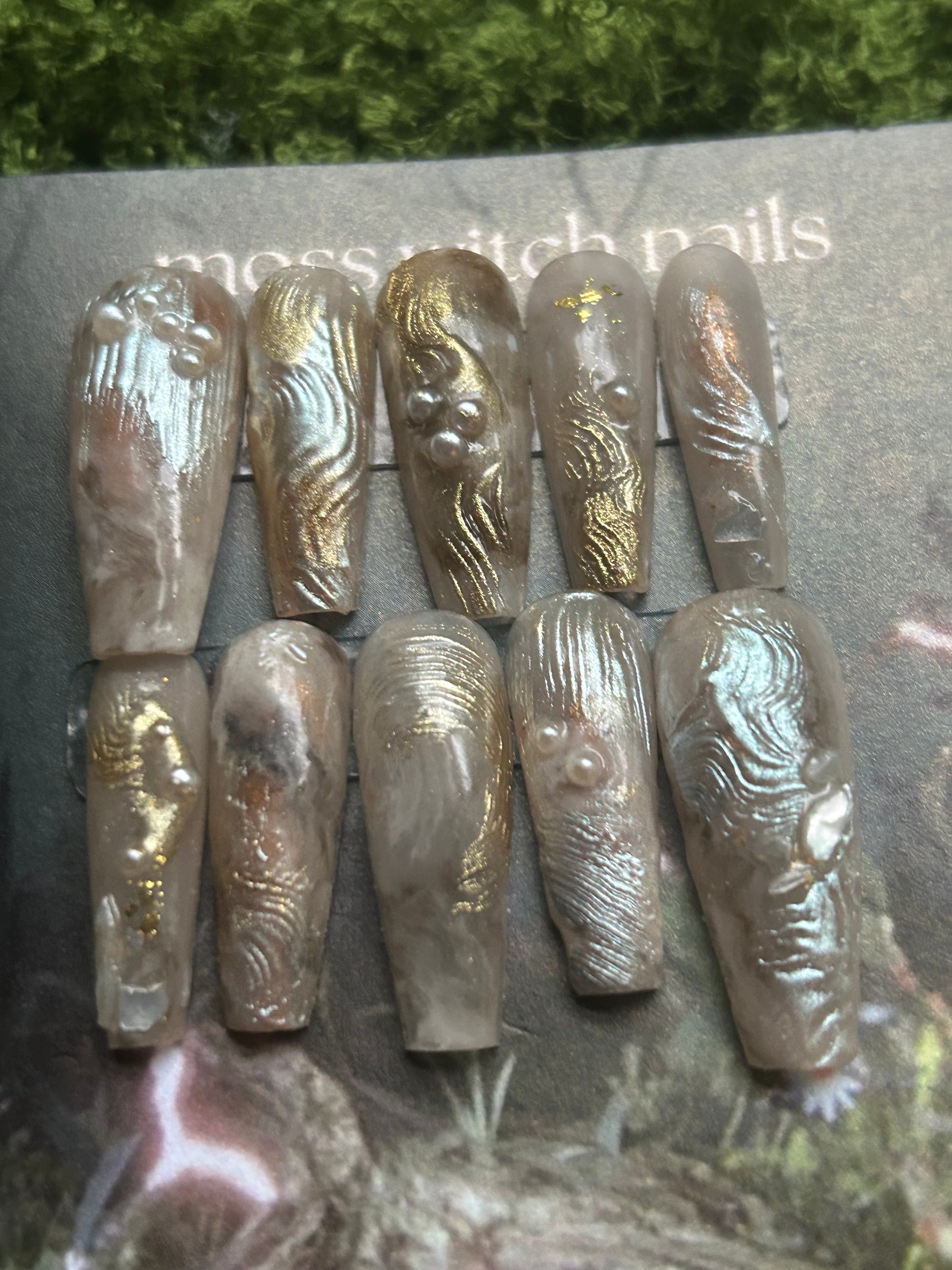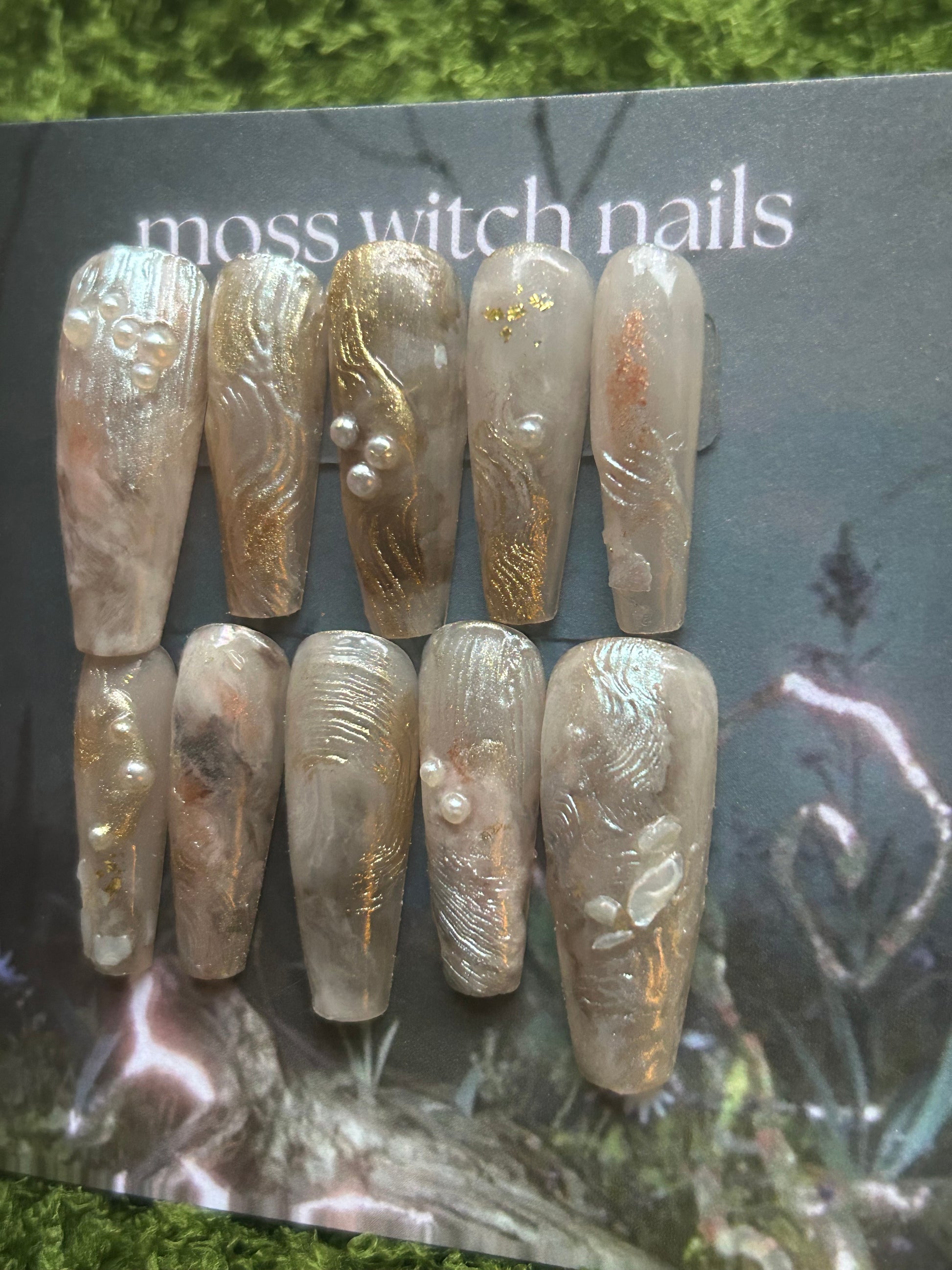 Due to the handmade nature of these nails, each order is completely unique & may slightly differ from the photo….making every set one of a kind.