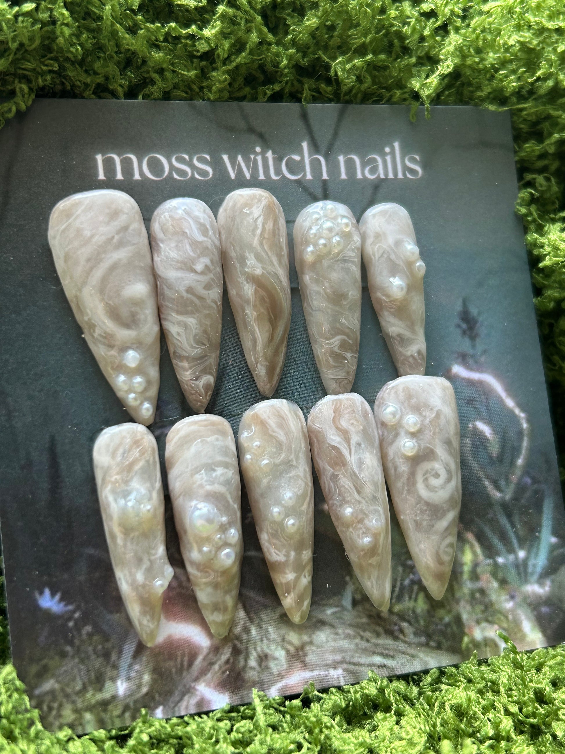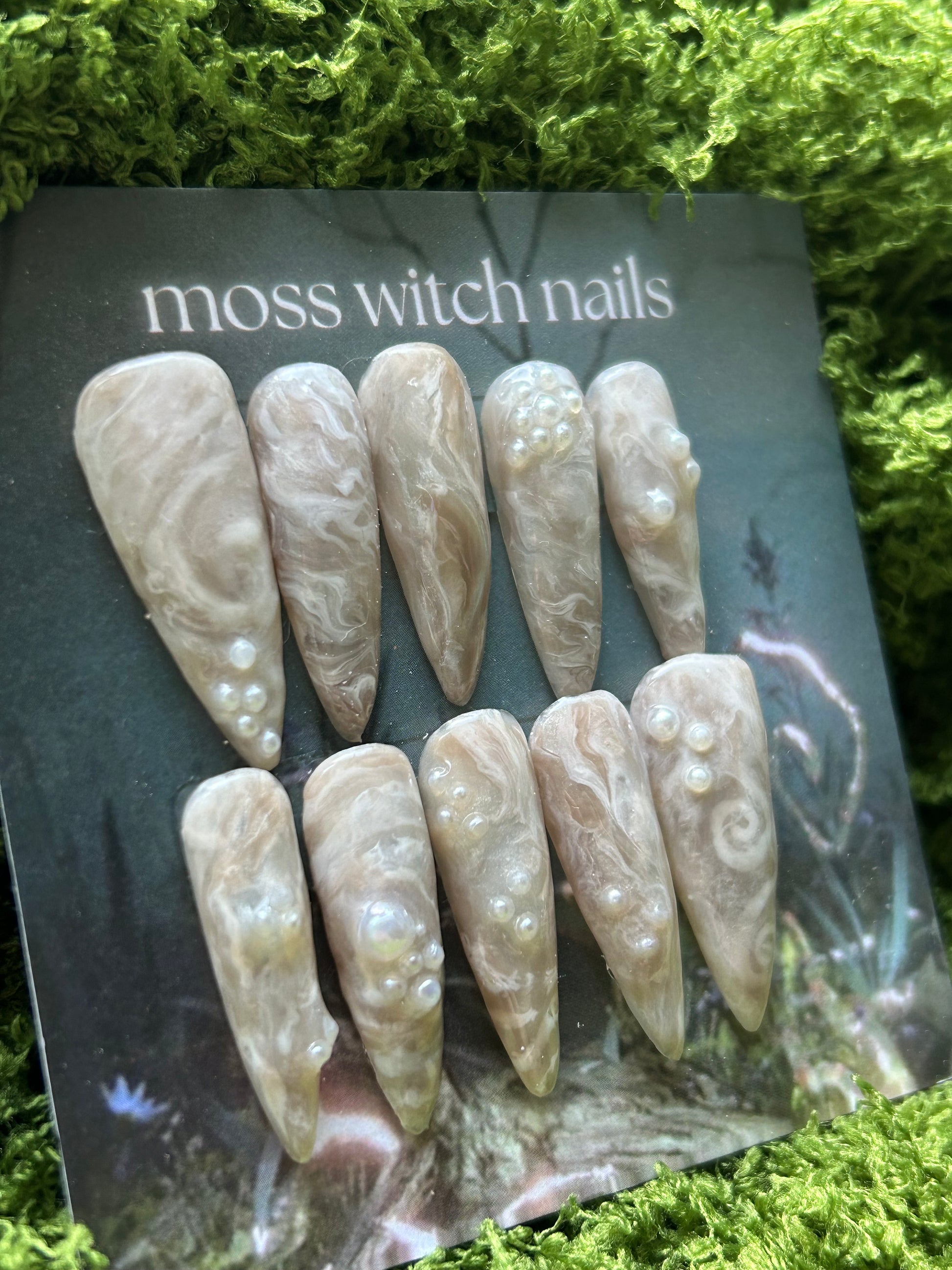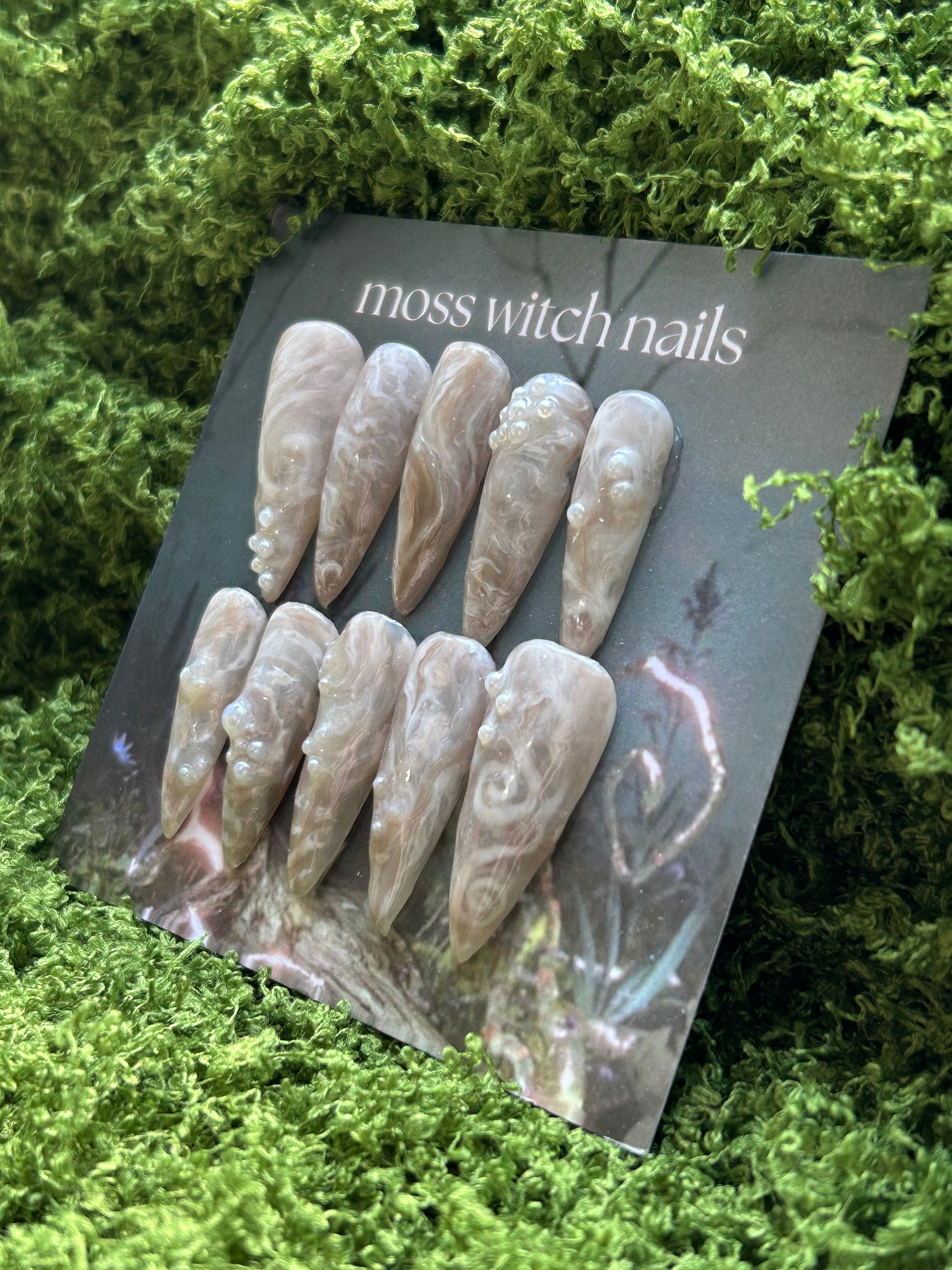 Due to the handmade nature of these nails, each order is completely unique & may slightly differ from the photo. Every set a one of a kind relic crafted just for you.