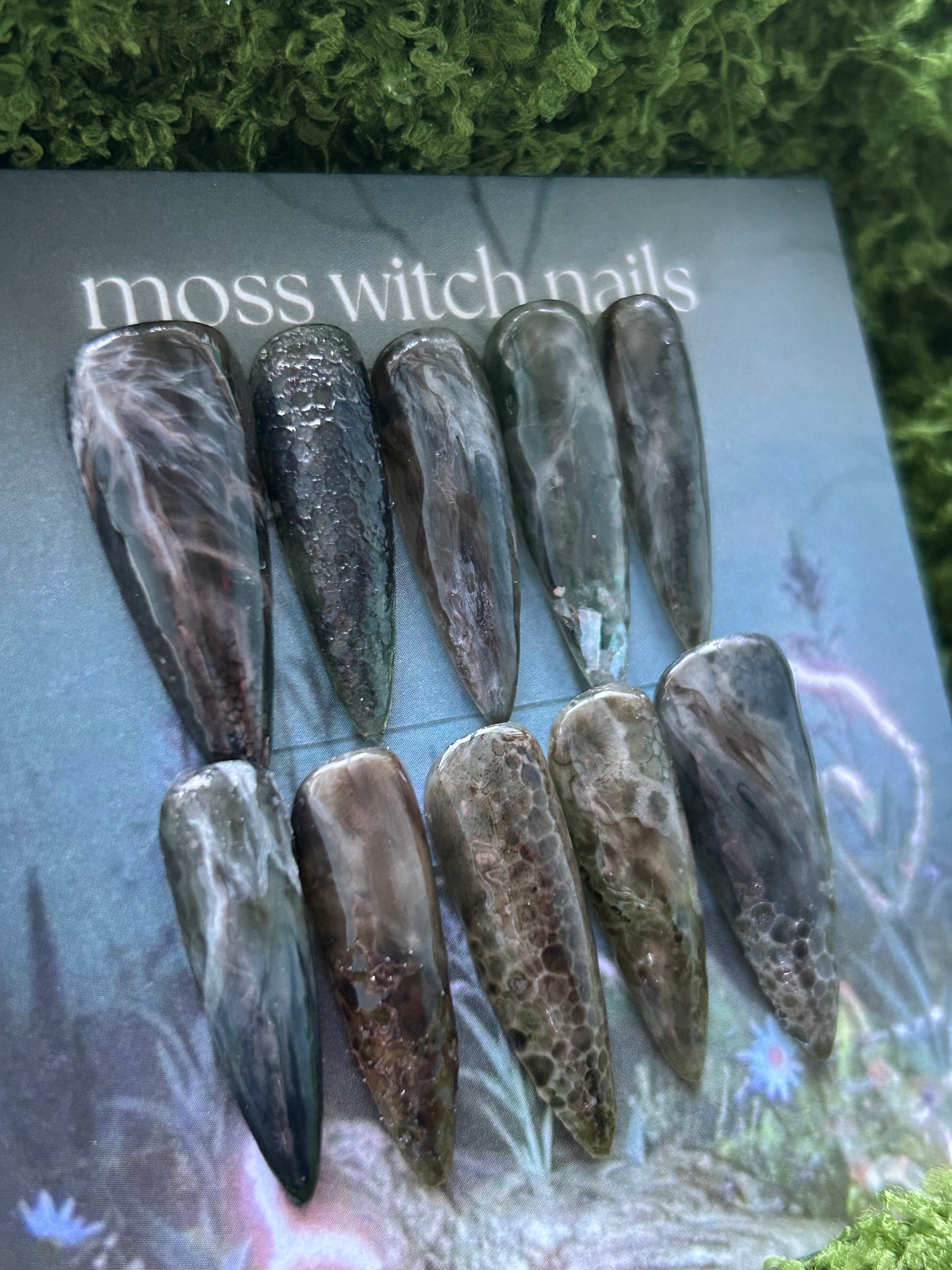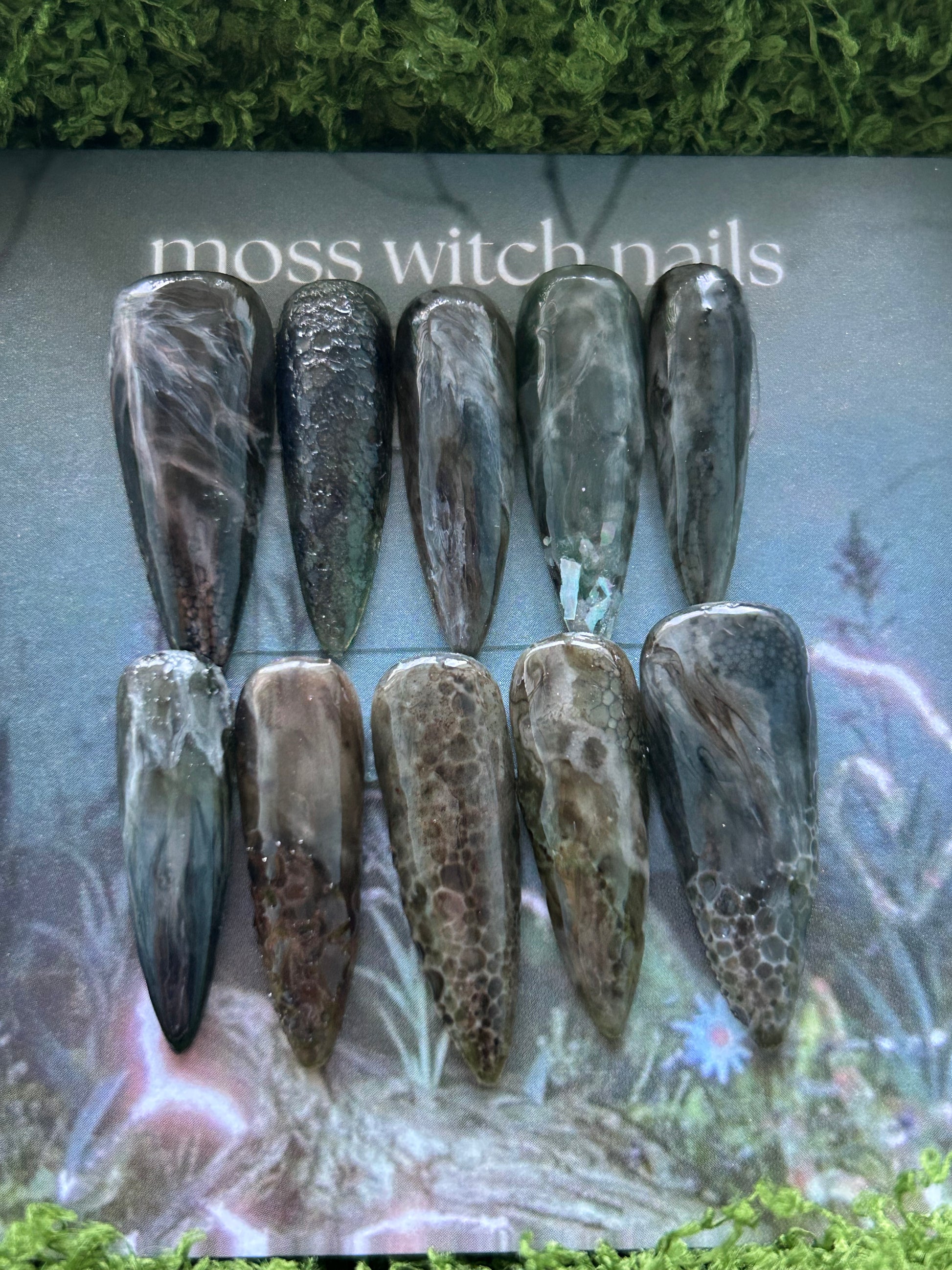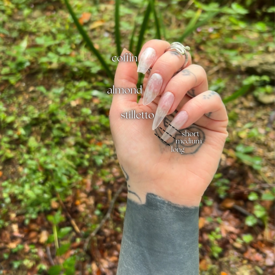 Due to the handmade nature of these nails, each order is completely unique & may slightly differ from the photo….making every set one of a kind.